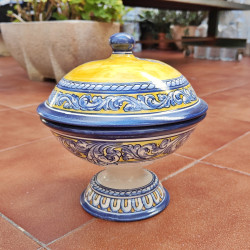 Calice avec couvercle en céramique peint à la main.