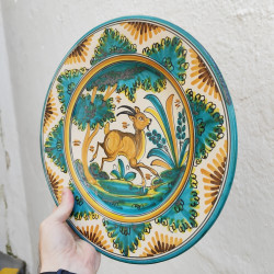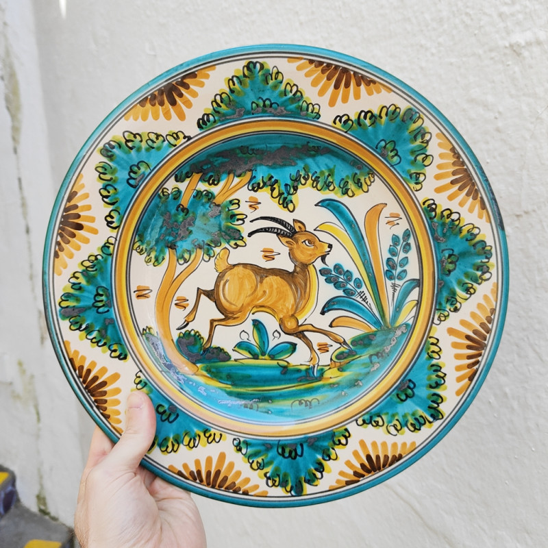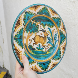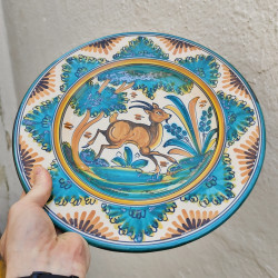 Plat de 33 cm. (13") de diamètre, entièrement fait à la main et peint à la main.