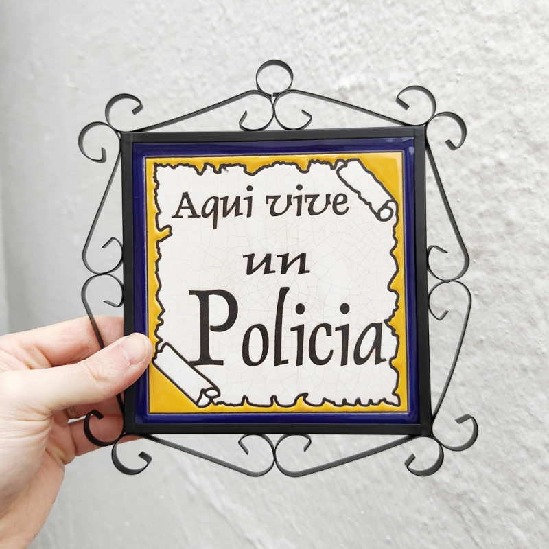 Tile "POLICIA" Avec cadre - 15cm. (6") -