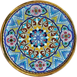 "Artecer" est le plus prestigieux des fabricants de ces assiettes en céramique de Séville. Ces assiettes sont émaillées à l'or 24 carats. Il est connu comme le travail de la "corde sèche", qui a été apporté par les Arabes au 8ème siècle en Andalousie. Depuis lors, ce savoir-faire a été réalisé en Espagne.
