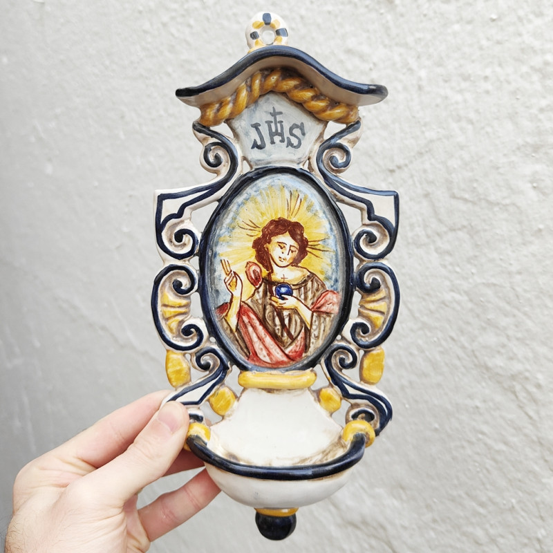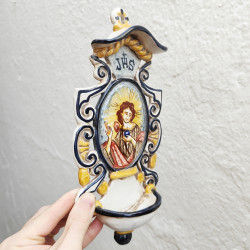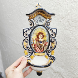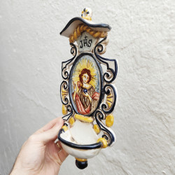 Font-croix "eau bénite" en céramique - "Style baroque" - 28 cm. - Fabriqué à Séville (Espagne) -