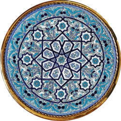 "Artecer" est le plus prestigieux des fabricants de ces assiettes en céramique de Séville. Ces assiettes sont émaillées à l'or 24 carats. Il est connu comme le travail de la "corde sèche", qui a été apporté par les Arabes au 8ème siècle en Andalousie. Depuis lors, ce savoir-faire a été réalisé en Espagne.