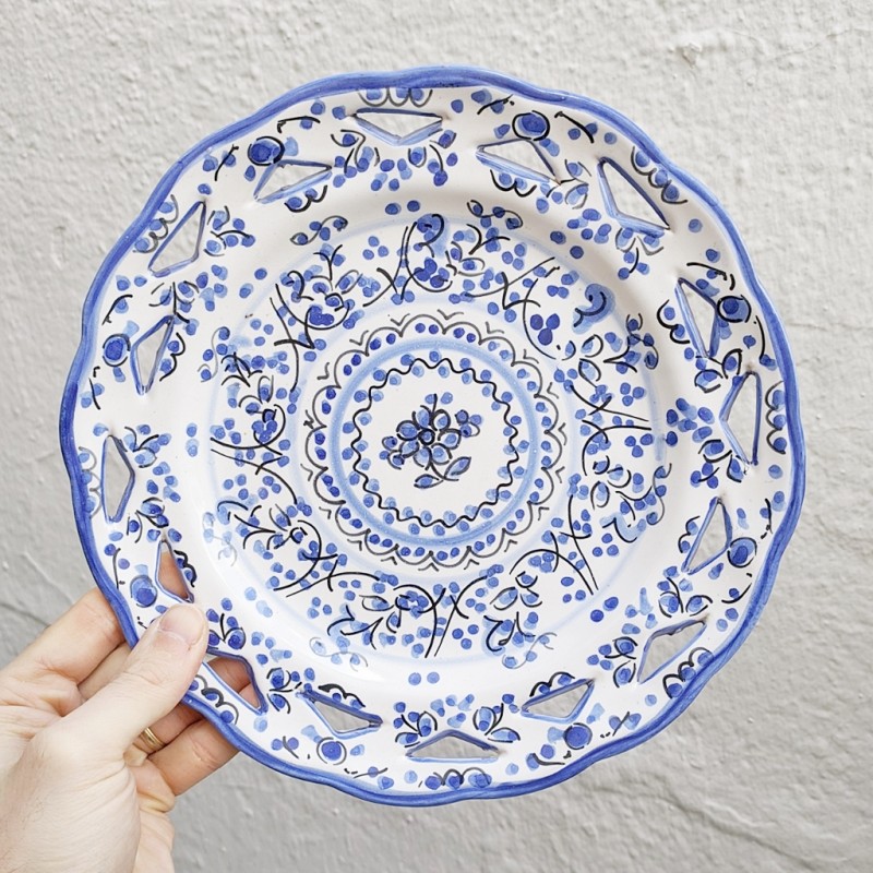 Plat en céramique - Style "Puntilla" - 25 cm. (10 in.) - Tolède - Espagne -