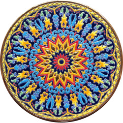 "Artecer" est le plus prestigieux des fabricants de ces assiettes en céramique de Séville. Ces assiettes sont émaillées à l'or 24 carats. Il est connu comme le travail de la "corde sèche", qui a été apporté par les Arabes au 8ème siècle en Andalousie. Depuis lors, ce savoir-faire a été réalisé en Espagne.