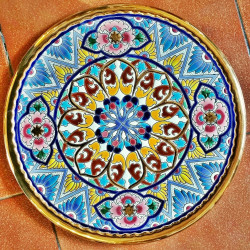 "Artecer" est le plus prestigieux des fabricants de ces assiettes en céramique de Séville. Ces assiettes sont émaillées à l'or 24 carats. Il est connu comme le travail de la "corde sèche", qui a été apporté par les Arabes au 8ème siècle en Andalousie. Depuis lors, ce savoir-faire a été réalisé en Espagne.