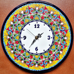 L'horloge en céramique de style «corde sèche» - 29cm. (11") - Fabriqué à Séville (Espagne) -