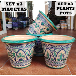 Pot en céramique ref.95-15 - Style "Bleu/Vert" - 3 unités - 15 cm. (6 pouces) - Tolède (Espagne) -