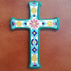 Croix en céramique réf.993 - 21 cm. (8") - "Corde sèche" - Fabriqué à Séville, Andalousie -