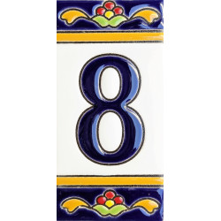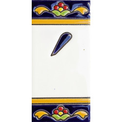 Panneaux avec chiffres et lettres en céramique polychrome, peints à la main en technique corde sèche pour plaques avec noms, directions et signalisation. Texte personnalisable.