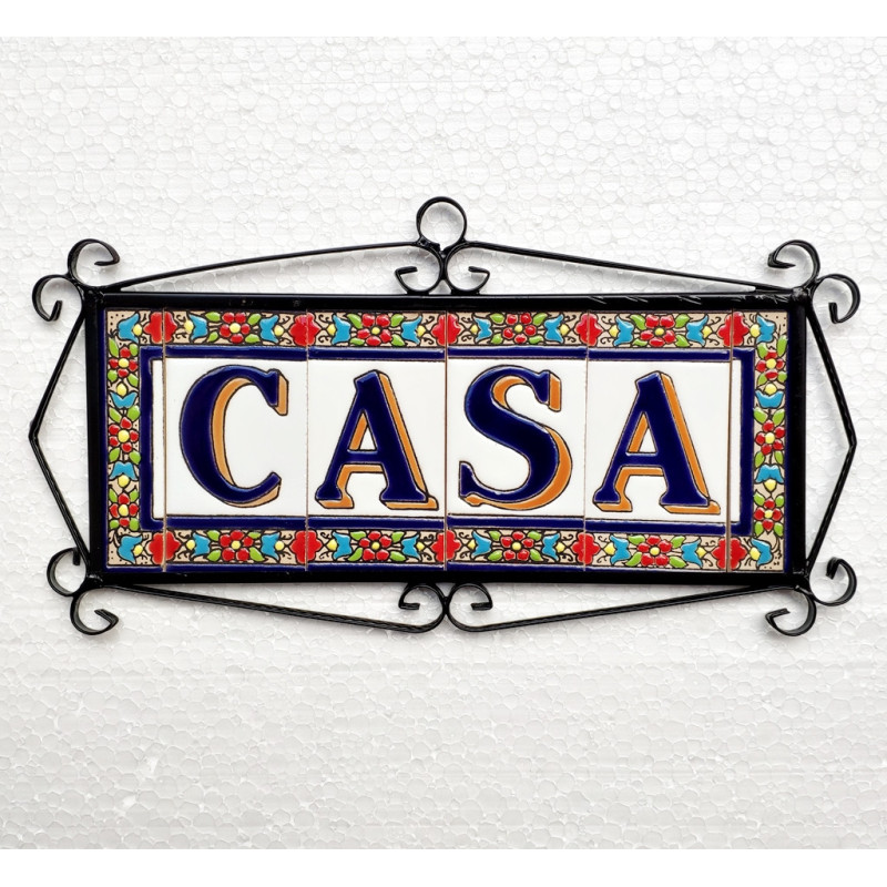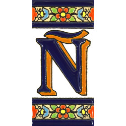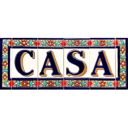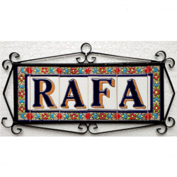 Signs with numbers and letters in polychrome ceramic tiles, hand-painted for making names, directions and signaling. Customizable text.