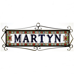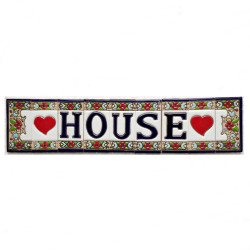 Signs with numbers and letters in polychrome ceramic tiles, hand-painted for making names, directions and signaling. Customizable text.
