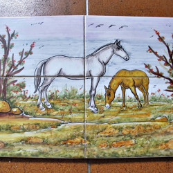 Ceramic Tile Mural "HORSES" - 4 Pieces - Made in Toledo (Spain).