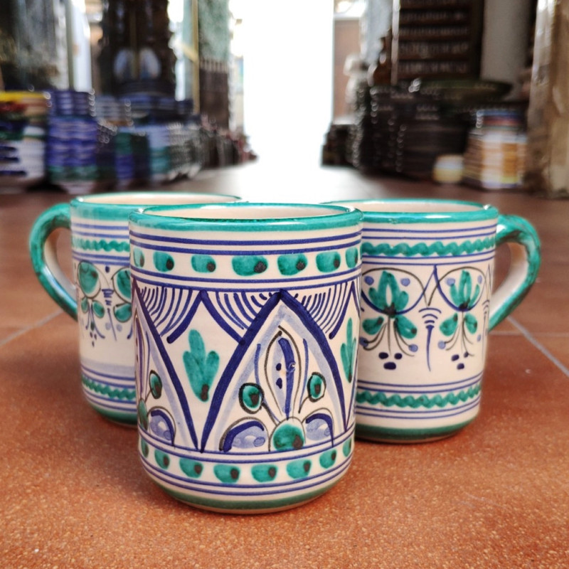 Set of two ceramic "mug" ref.72-12 - Style "Green/blue" - 9.5 cm. (3.75") - Toledo (Spain)