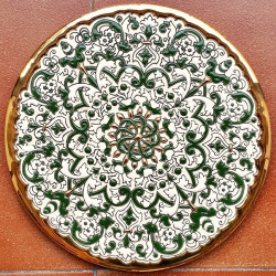 "Artecer" is the most prestigious of the manufacturers of these Seville ceramic plates. These plates are enamelled with 24-karat gold. It is known as the work of "dry rope", which was brought by the Arabs in the 8th century to Andalusia. Since then this craftsmanship has been carried out in Spain.