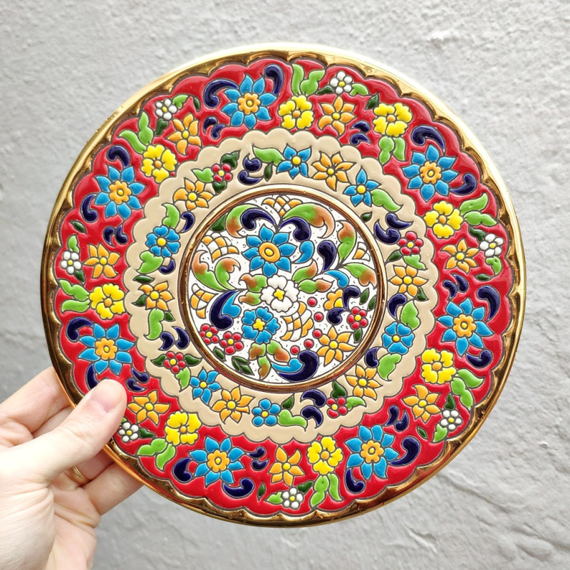 "Artecer" is the most prestigious of the manufacturers of these Seville ceramic plates. These plates are enamelled with 24-karat gold. It is known as the work of "dry rope", which was brought by the Arabs in the 8th century to Andalusia. Since then this craftsmanship has been carried out in Spain.