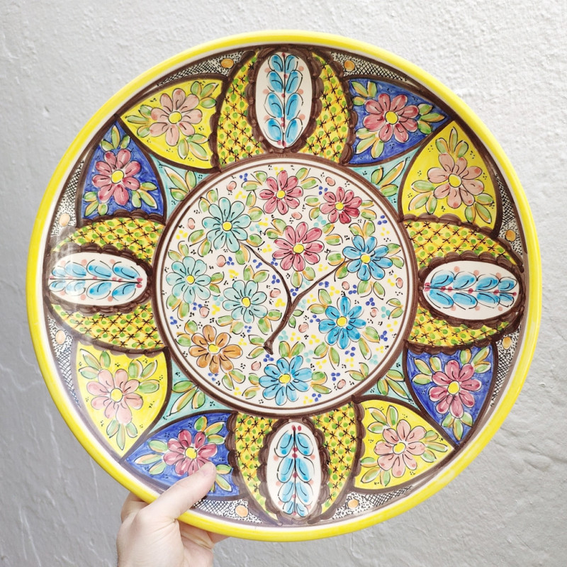 "Cruz" is a well-known family of Puente del Arzobispo in the province of Toledo, in central Spain. For many generations this family has made pottery. The whole family works, brothers, brothers-in-law and children. Older brother Emilio is the director, but his father and mother still lend a hand in making and painting pottery.