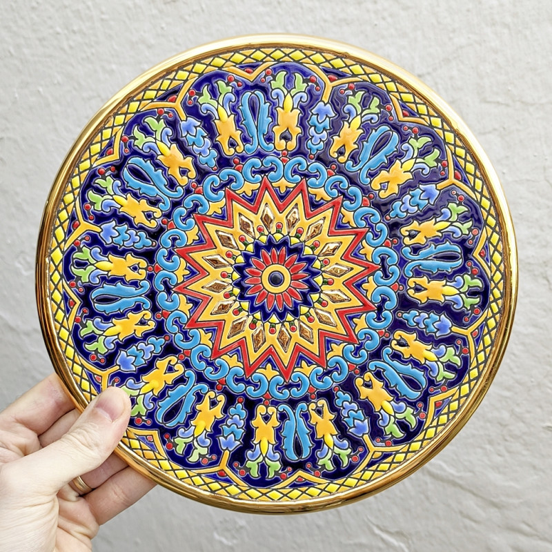 "Artecer" is the most prestigious of the manufacturers of these Seville ceramic plates. These plates are enamelled with 24-karat gold. It is known as the work of "dry rope", which was brought by the Arabs in the 8th century to Andalusia. Since then this craftsmanship has been carried out in Spain.