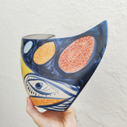 "Picassian" vase in "stoneware" - hand painted -
