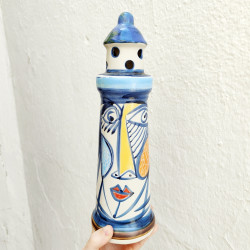 "Picassian" Lighthouse in "stoneware" - hand painted -