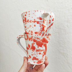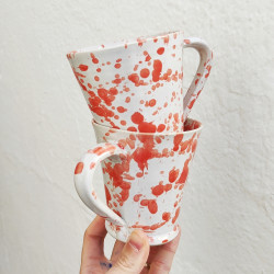 Set of two mugs in "stoneware" - 10.5cm. (4.1 ") - Style" Drops/Red"- Made in Andalusia (Spain) -