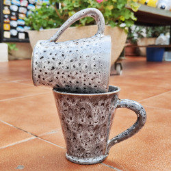 Set of two mugs in "stoneware" - 10.5cm. (4.1 ") - Style" Snake/Black"- Made in Andalusia (Spain) -