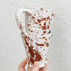 Set of two mugs in "stoneware" - 10.5cm. (4.1 ") - Style "Drops/Brown" - Made in Andalusia (Spain) -