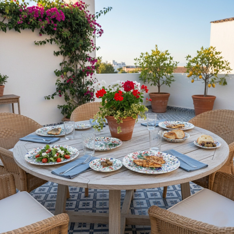 Stoneware Dinner plates - Decoration "Drops/Multi" - 2 units - Cordoba - Andalusia (Spain) -