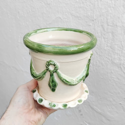 "Malagueña" style flowerpot with plate - 15 cm - Malaga, Andalusia (Spain) -