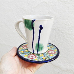 Set of six ceramic coasters - 14cm. (5.5") - "Cuerda seca" - Made in Seville, Andalusia -