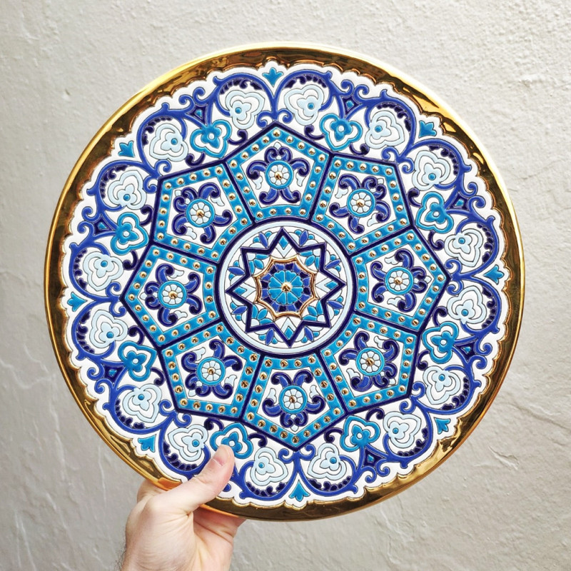 "Artecer" is the most prestigious of the manufacturers of these Seville ceramic plates. These plates are enamelled with 24-karat gold. It is known as the work of "dry rope", which was brought by the Arabs in the 8th century to Andalusia. Since then this craftsmanship has been carried out in Spain.