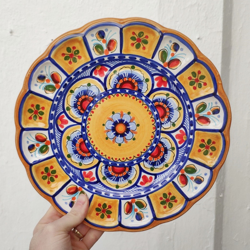 Ceramic plate, "Castañuela" model - "Yellow" style - 30 cm. (11.5") - Toledo (Spain) -