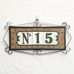 Signs with numbers and letters in polychrome ceramic tiles, hand-painted for making names, directions and signaling. Customizable text.